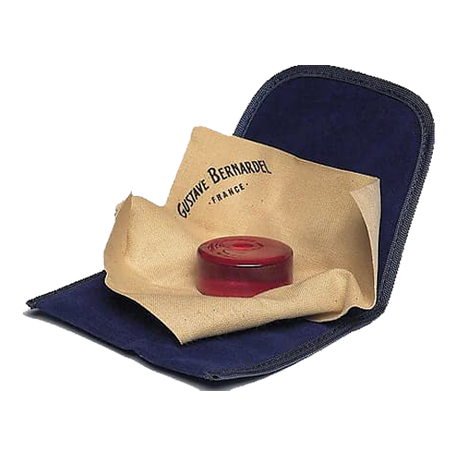 The famous violin maker Gustave Bernardel created the recipe for Gustave Bernardel Rosin early in the 20th century. This popular light colored, medium sticky rosin produces a clear, bright tone with very little dust. The round cake of rosin is attached to a protective suede cloth and packaged in a blue pouch. For violin, viola, and cello.